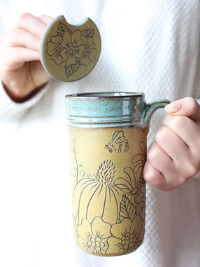 We make a wide variety of Dault Pottery Travel Mugs. At times we sell ready-to-ship travel mugs and at others we take pre-orders (creating the pieces once they are ordered).